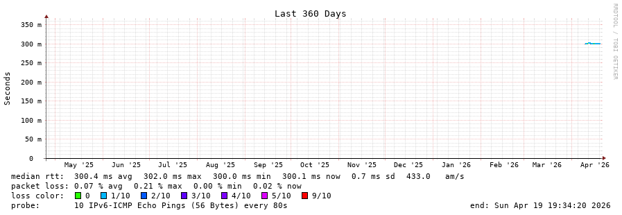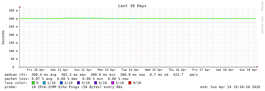 19 > 2402:4480:8002:1000::2:d (2402:4480:8002:1000::2:d) [AS174] 304.411ms 304.600ms 302.968ms